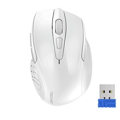AmazonPlug and Play: 2.4 GHz technology ensures a strong wireless connection with a range of up to 15 metres. Simply connect the miniature nano receiver to your computer and you're ready to go. pc mouse is compatible with Windows 11/10/8/7/XP/Vista and Mac OS/Linux Precision Tracking: The laptop wireless mouse features advanced optical tracking and offers 5 adjustable DPI levels (800/1200/1600/2000/2600) for office and gaming modes. Precise movement on virtually any surface Long 24 Month Battery Life: The wireless mouse automatically enters sleep mode after 10 minutes of inactivity to conserve power and wakes up with a smooth motion. Enjoy up to 2 years of battery life with 2 AAA batteries (batteries not included) Comfort and Durability: Soft rubberised side grips and a comfortable curved design ensure constant comfort throughout the day. In addition, the buttons have a lifetime of up to 10 million clicks, making it more comfortable than a touchpad for right-handed users. Recommended Buttons: The forward/backward buttons on the ergonomic mouse will help you to greatly improve your efficiency when browsing websites/reading emails. (Note: Side buttons are not available for Mac or iOS) 36-Month Technical Support: If you encounter any problems when using the mouse wireless, please contact TECKNET's professional customer service team and enjoy 36 months of TECKNET technical support (registered users only)
