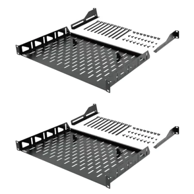【Durability】: Server Rack Shelf made from 1.5mm thickness Cold Rolled Steel, with Crimped edge strengthening load-bearing to 44lbs(20kg) ; Electrostatic powder coat preventing rust and corrosion 【Professional Design】: Porous design facilitates ventilation and heat dissipation at the bottom of the equipment 【Complete Accessories】: Cage nuts, mounting screws and washers; Immediate installation and use after arrival; Installation manual and videos for reference 【Widely Application】: Network Rack Shelf suitable for 19in wide computers, audio and video, data, media, telecommunications, IT, network, server equipment; Compliant EIA/ECA-310-E 【Easy To Install】: Designed to fit in 2 and 4-post server racks; All hardware provided for quick and easy installation