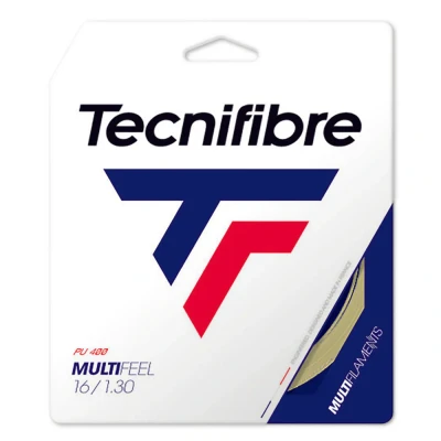 Sweatband The Tecnifibre MultiFeel tennis string set offers fine playability and softer feel on shots thanks to increased elasticity, and its multifilament structure consisting of a polyamide core surrounded by PU fibres. The string ensures good tension maintenance, and provides increased control. Also, there is the SPL (Silicium Pyrogene Lubritec) anti-abrasion coating which is responsible for smoothness and good speed of the ball. This multifilament string delivers a dynamic performance and greater comfort, and it is shipped in a 12.2m (40ft) set.
