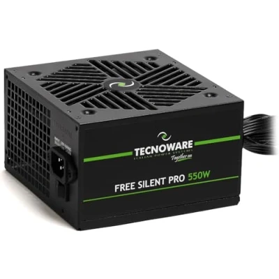 Tecnoware Free Silent Pro 550W ATX Power Supply for Advanced PCs with NVIDIA GeForce GTX Graphics Card RTX, Fan, PCI E Connectors, CPU 4+4, SATA, Molex.