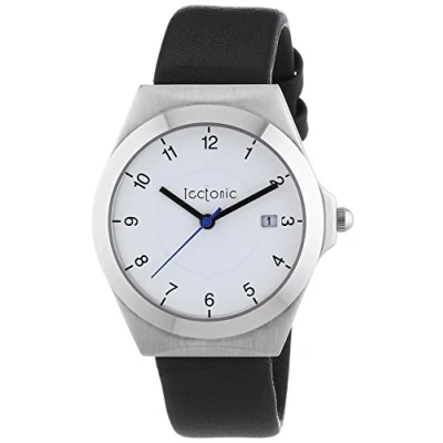 Tectonic Men's Quartz Watch with Silver Dial Chronograph Display and Black Leather...