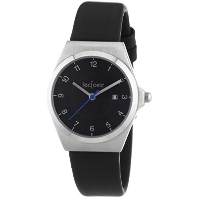 Tectonic Women's Quartz Watch with Black Dial Analogue Display and Leather Strap...