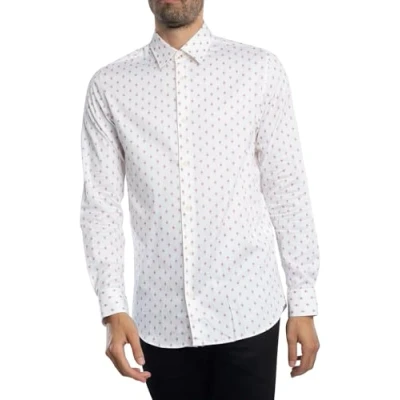 Ted Baker Area Mens White Geometric Print Shirt Cotton Size Large