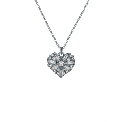 Ted Baker Cherish Crystal Cluster Heart Locket Pendant Necklace for Women (Silver/Crystal)