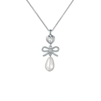 Ted Baker Imogen Icon Charm Heart Bow Pearl Drop Pendant Necklace for Women (Silver/Pearl & Crystal)