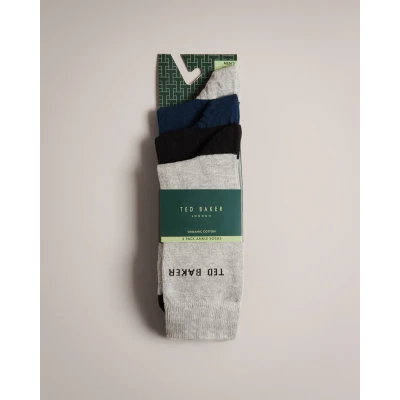 Ted Baker London Mixxed 3 Pair Pack of Mens Ankle Socks Organic Cotton Black Navy Blue & Grey Size 7 11