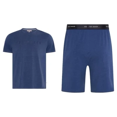 Ted Baker Men's Nightwear T Shirt and Short Set Pajama, Estate Blue, M