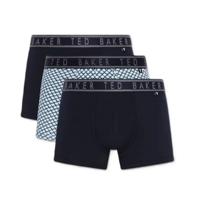 Ted Baker Mens 3 pack Cotton Trunks, Navy/Ounslo Palm/Geo Blue, XL UK