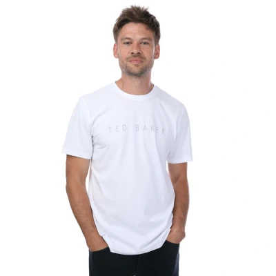 Ted Baker Mens Broni Branded T Shirt in White Cotton Size Large