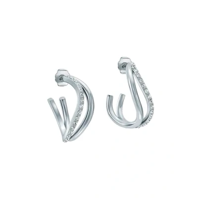 Ted Baker Wayva Jewelled Wave Large Hoop Earrings for Women (Silver/Crystal)