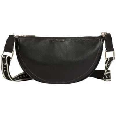 Ted Baker Women's Webbing Leather Half Moon Crossbody Bag, Black