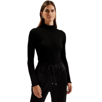 Ted Baker Womens Wmk janittt Rib Funnel Neck Frill Jumper Sweater, Black, 16 UK