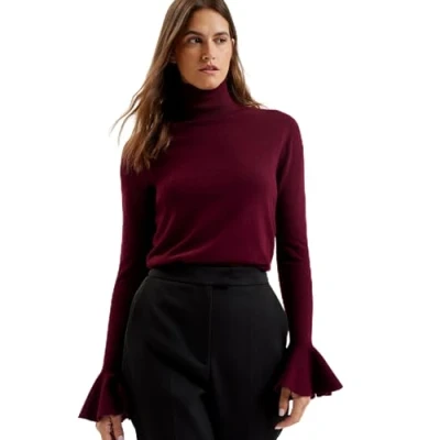 Ted Baker Womens Wmk tamsenn roll Neck Fluted Sleeve Sweater, Dk red, 10 UK