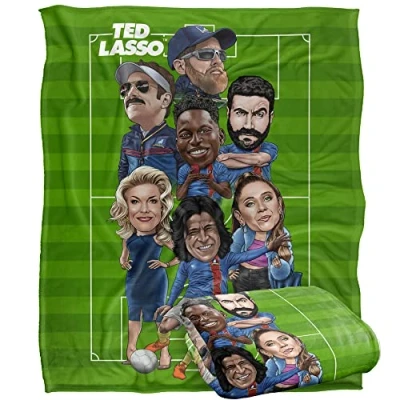 TED LASSO ultra silky touch blanket, 300 GSM fabric provides warmth and comfort yet is lightweight and breathable, that will make a great decorative addition to any room Shrink and fade resistant, the products are hand-printed using a dye sublimation process; this design has amazing color vibrancy & made of 100% polyester that is super soft and long lasting Size: 152 x 127 cm microfiber fleece fabric with double overlock stitch to create ultra-fluffiness and durability; this all-purpose blanket makes the optimum holiday gift, birthday present, or collector's item The designs are created by the talented in house graphic art team who often hand draw and illustrate each design Care, the products are machine washable; tumble dry low; not to mention, the products are the optimum holiday gift, birthday present, or just treat yourself