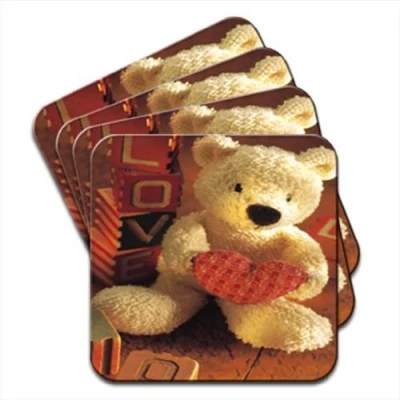 Teddy Bear Holding Heart with Love Bricks Set of 4 Coasters