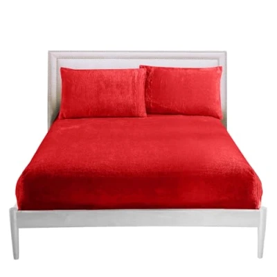 Teddy Fleece Fitted Sheet Single, Super Soft Bottom With Elasticated Corners, Warm & Cozy Polyrster Bed sheets, Red