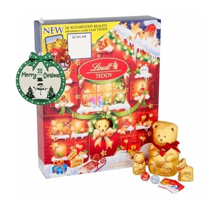 Discover A Delicious Piece Of Lindt Chocolates Teddy Advent Calendar 2025 with Topline Christmas Tree Decoration. Their dedication, passion and skill has led to the creation of a wide range of uncompromising chocolate masterpieces including the chocolate Teddy and his friends - the perfect way to show you care. Enjoy waiting for Christmas with Chocolate Advent Calendar 2025 - includes 6x Milk Chocolate Snowdrops with a Creamy Double Milk Filling, 6x Mini Milk Chocolate Truffles with a Smooth Melting Filling, 5x Swiss Milk Chocolate Napolitains, 3x Teddy & 3x Gold Reindeer Milk Chocolate (10g) and 1x Teddy Milk Chocolate (100g). A Festive Christmas chocolate Advent Calendar 2025 for Kids This chocolate advent calendar is a thoughtful and sophisticated Christmas gifts choice for family, friends, or colleagues, adding sweetness and joy to their holiday celebrations. Whether you're searching for the perfect Christmas gifts for women, or a delightful Secret Santa present for kids, this assorted Lindt advent calendar is a sure-fire way to spread Christmas cheer. Treat yourself or someone special to 24 days of indulgence with the ultimate way ! With 24 December mornings beginning with a sumptuous unwrapping of delicate Swiss chocolate, The Chocolate Advent Calendarfor Kids lasts a long time – right up to Christmas Eve. Topline Christmas Hanging Ornament – Snowman & Trees Design: crafted in a round, lightweight wooden bauble shape with a cheerful snowman and evergreen trees, it’s framed by a green border decorated with white stars and topped with a large festive bow. Dimensions: 7.9cm x 7.4cm Perfect for Christmas trees, gift embellishments or holiday décor accents. Ingredients: Sugar, Coca Butter, Whole Milk Powder, Cocoa Mass, Lactose, Skimmed Milk Powder, Emulsifier, Barley Malt extractm flavouring. Alergen: May contain Hazelnut, Almonds and other Nuts