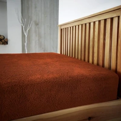 Teddy Sherpa Fleece Fitted Bed Sheet Thermal Super Soft Warm Cosy Luxurious Plain Bear Sheets (Burnt Orange, Double)