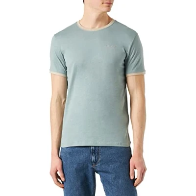 Crew Neck Short Sleeve T-Shirt Contrast ribbed collar and sleeve cuffs Flocked brand logo on chest