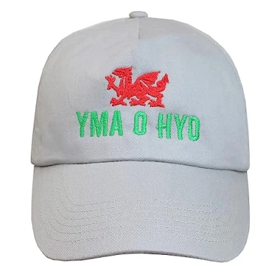 TeddyT's Adult Welsh Football Yma O HYD Dragon Baseball Cap (Light Grey)