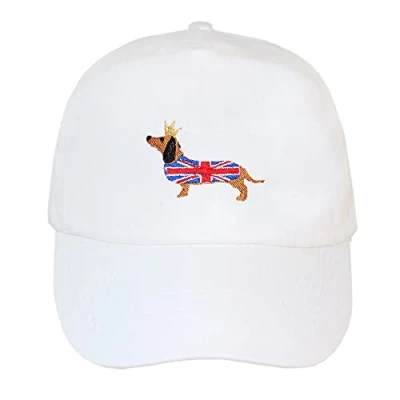 TeddyT's Kid's Dachshund Sausage Dog Union Jack Coronation Baseball Cap Hat (White)