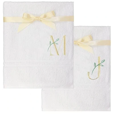 TeddyT's Personalised Embroidered Leaf Initial Bath Towel White Wedding Gift Set