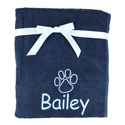 TeddyTs Personalised Super Absorbent Puppy Paw Print Dog Pet Towel Gift (Navy)