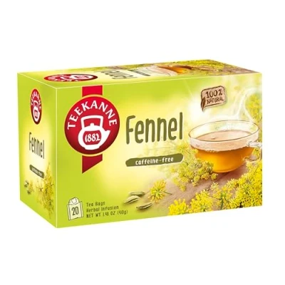 TEEKANNE Fennel Tea is a soothing infusion enriched with naturally included essential oil, offering an aromatic and gentle taste. Only the best Fennel Seeds are selected to create this all-natural drinking experience. This calming tea provides a delicate and refreshing experience with every sip, perfect for enjoying hot. It brings a touch of natural tranquillity to your cup, making each moment a peaceful retreat. Each cup, marked with the Forest Stewardship Council Seal, guarantees environmentally responsible sourcing and the highest standards of quality. Made with the finest ingredient, this tea captures the essence of the fennel seed in its purest form, showcasing TEEKANNE'S dedication to quality control and delivering a rich, full-bodied taste that celebrates the authentic flavour of a healthy herbal tea. At TEEKANNE quality is our highest priority form the leaf to your cup. Drawing 135 years of experience and a passion for tea, TEEKANNE never settles for less than the best. With 135 years of experience TEEKANNE is No.1 for the complete tea category in European core markets and No.1 in herbal and fruit infusions worldwide. This tea is 100% natural, no additives, or artificial flavourings. The ingredients used in our harmonious blends are carefully analysed by our own quality control laboratory in Germany. 20 Individually Wrapped Double Chamber Tea Bags to Preserve Freshness. TEEKANNE gives the highest priority to packaging optimization and reduction. The folding cartons in which our tea is sold are made of 100 % FSC-certified cardboard and thus come from sustainable forestry. Rainforest Alliance Certified. ECO friendly packaging means no plastic! Another important measure for TEEKANNE is to discontinue the use of plastic wrap for their products in the retail market.