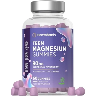 EXTRA STRENGTH: Each daily serving delivers 800mg of Magnesium Citrate, providing 90mg of Elemental Magnesium in delicious gummies. GREAT-TASTING TABLET ALTERNATIVE: Our chewable, high-strength gummies are bursting with natural berry flavour, making it easier than ever to ensure you're getting enough Magnesium daily. WHY MAGNESIUM CITRATE?: We didn’t just pick any Magnesium - we chose Magnesium Citrate, one of the best highly-absorbed forms of Magnesium available. That means more benefits in every bite! SUITABLE FOR: Horbaach Teen Magnesium gummies are suitable for vegans and vegetarians, offering the perfect formula for teen girls & boys at the best value! PACKAGING MAY VARY: We are in the process of updating our packaging. If the product you receive appears different, please rest assured that the benefits remain the same.