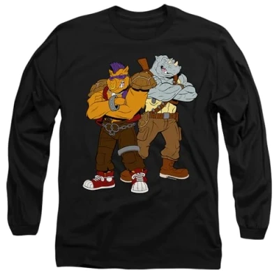 Teenage Mutant Ninja Turtles TMNT Bebop and Rocksteady Mens Long Sleeve T Shirt, Black, L