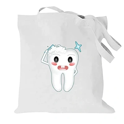 Teeth Printed Canvas reusable grocery Bags, Foldable Casual Travel HandBag, Shoulder Beach Tote Shopper bag eco friendly super strong washable Storage bags Shopping for Women