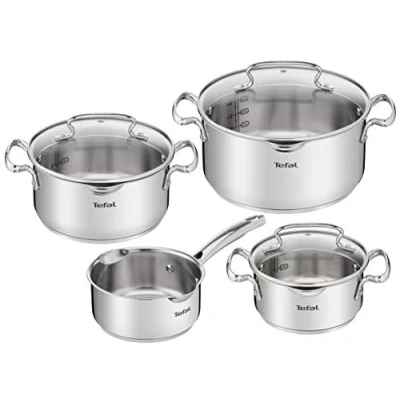Cookware set of 3 pots 16/20/24 cm, 1 saucepan 16 cm, 3 glass lids with strainer and pouring spouts plus riveted handles Pots made from the highest quality 18/10 stainless steel alloy ensuring great rust resistance for long lasting performance with insulated coated handles. Its thick 5.3mm base delivers even cooking Cookware set with pouring edges for accuracy, measuring markings to control quantities with ease and glass lids for convenience and tracking of the cooking process Suitable for all types of cookers: gas, electric, ceramic, halogen and including induction These cooking pots are oven safe up to 260 degrees without lid: in the case of being with lid, it is resistant in optimal conditions up to 175 degrees Dishwasher safe thanks to its mirror polished stainless steel material that ensures a shiny finish even in the dishwasher The saucepans have been designed with performance for optimal performance on a daily basis, Weight: 12.786811196 pounds, Manufacturer: TEFAL