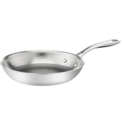Stainless steel pan with scratch-resistant mesh coating: food does not stick to food, the pan is easier to clean compared to uncoated stainless steel products Three-layer frying pan: made of stainless steel/aluminium/stainless steel for perfect searing and even cooking, with a 50% better heat distribution than a single layer stainless steel product Suitable for all heat sources, including induction (gas, electric, ceramic, induction); oven-safe up to max. 250° Handle: riveted stainless steel handle for a secure and durable grip International products have separate terms, are sold from abroad and may differ from local products, including fit, age ratings, and language of product, labeling or instructions.