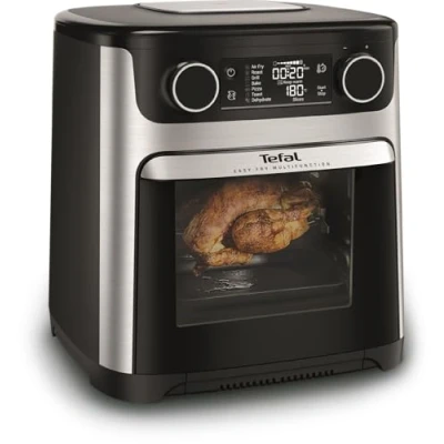 Simplify your meal prep with this Tefal Easy Fry. With nine pre-set programs, including air fry, grill, roast and dehydrate, you can prepare a variety of dishes easily. Its large 15 litre capacity is ideal for large families. Cook a 1.5 kg roast chicken or 900 g of fries in one go. And the three-level rack system lets you cook multiple foods at the same time. That means you can make complete family meals in minutes.Good to know- The dual heating system makes sure your food is evenly cooked and extra crispy- Its intuitive screen and rotary knob make it easy to select and adjust the settings- It uses up to 70% less energy and cooks up to 45% faster than traditional ovens- The My Tefal app enhances your cooking with tailor-made recipes- With manual temperature control up to 230°C, you can cook every meal with precision