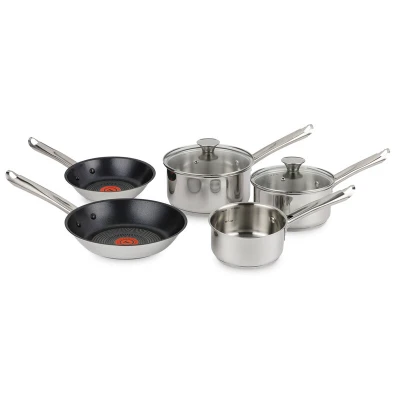 Tefal Elementary 5 Piece Set with 14 cm Milk 16/18 Saucepans Lids and 20/24 Frying Pans, Stainless Steel, Silver