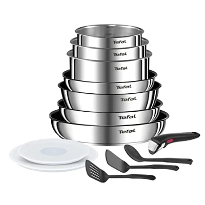 Tefal Ingenio Emotion 13 Piece Cookware Set, Stainless Steel, Stackable, 5 Year Guarantee, Non Stick Coating, Induction L897DS04