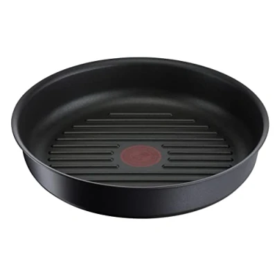 Tefal Ingenio Grill Pan 26 cm, Induction, Non Stick Coating, Cast Aluminium, Stackable, Dishwasher Safe, Eco Resist L8584004, Black,