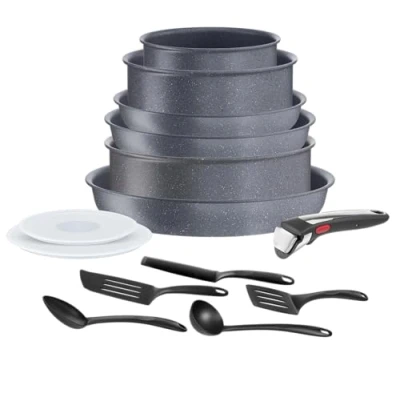 INGENIO is much more than a frying pan: you can cook on the baking sheet, gratin your recipes in the oven and store leftovers in the fridge (do not store acidic foods) Contents: frying pans 22/24/28 cm, saucepans 16/20 cm (1.5/3 L), sauté pan 24 cm, airtight lids 16/20 cm, 5 spatulas (spoon, ladle, angle, long, pancake) and 1 removable handle ULTRA SECURE REMOVABLE HANDLE: The secure and patented removable handle is backed by a 10-year warranty DURABLE MINERAL-ENRICHED COATING: Mineralia+ coating is enriched with minerals, ensuring a perfect glide for easy low-fat cooking; Safe nonstick, PFOA-free, lead-free, cadmium-free Made in France. Completely designed and manufactured in France, without compromising on quality Space-saving: thanks to its stackability, Ingenio saves you space in your cupboards EASY CLEANING: Hand washable, dishwasher safe (except handle), Tefal recommends SUN All in 1 products, their formula ensuring optimal longevity of your pans and pans COOKING START INDICATOR: Thermo-Signal innovation changes colour when you can start cooking for perfect grilling every time you use All hobs including induction: suitable for gas, electric, ceramic and induction FAST & HOMOGENOUS COOKING: The Thermo-Fusion bottom allows better induction compatibility, a rapid rise in temperature and even cooking results, Manufacturer: TEFAL