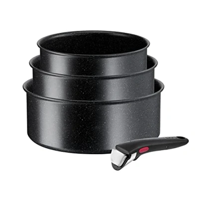 Tefal L39996 Ingenio Black Stone 4 Piece Casserole Set Stackable Non Stick Coating Suitable for Induction Cookers Thermal Signal Temperature Indicator