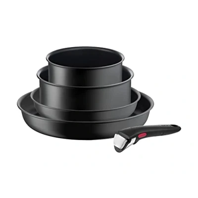 Switch from the stove directly to the oven, then to the table and then store leftovers in the fridge - the Ingenio removable handle system ensures exceptional comfort in everyday life Thanks to its space-saving, stackable concept, Ingenio cookware fits comfortably in your cupboards, drawers and shelves Super secure removable universal handle: the secure and patented removable handle can hold up to 10 kg* (*According to internal tests) Temperature indicator thermal signal: the innovative thermal signal zone turns uniformly dark red when the pan is optimally pre-heated and ready to roast - for a perfect cooking result every time 5-piece set consisting of: 2 frying pans (22/28 cm), 2 saucepans (16/20 cm) and 1 removable universal handle, Weight: 3.74 Kilograms, Manufacturer: Tefal