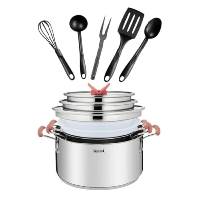 SPACE SAVING & STACKABLE The Opti'Space pot and kitchen utensil set allows for easy stacking and convenient storage to save space in your kitchen cabinets Fast and even cooking: the strong thermo-fusion base ensures fast and even cooking results and is compatible with all hobs (gas, electric, ceramic and induction) Measuring scale (pots only): the clever design with integrated measurement markings on the inside of the pot ensures precise results every time International products have separate terms, are sold from abroad and may differ from local products, including fit, age ratings, and language of product, labeling or instructions.