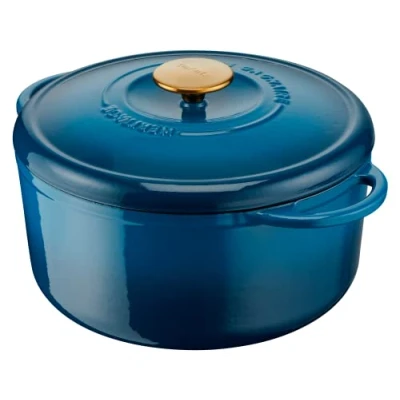 Tefal Pierre Gagnaire E2610504 Cast Steel Casserole Dish Diameter 29 cm, 7.4 L, Induction, Special Condensation Lid, Heat Retention, Slow Cooking, Soft Caramelization, Heritage Alps Blue