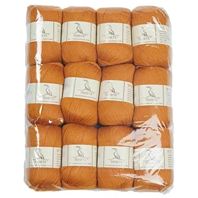TEHETE Merino Wool 12X50g 3 Ply Soft Hand Knitting Crochet Yarn for Sweaters, Scarf, Leggings, Gloves, Socks (12 Balls, Ginger)