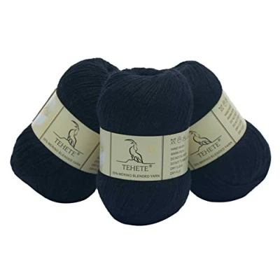 TEHETE Merino Wool Yarn for Knitting and Crochet 3ply 50g x 3 Balls soft warm Black