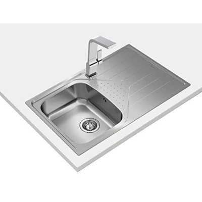 Stainless steel sink, polished finish. A bucket and drainer, on the right. Interlocking installation. Drain with manual valve with 3½" basket and siphon. 170mm bucket depth 45 cm furniture Dimensions H x W x D (cm): 50 x 79 x 17. 45 cm base cabinet, Weight: 6.7020527648 Pounds, Manufacturer: TER1A