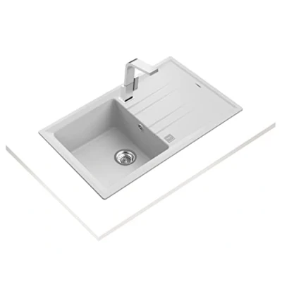 Tegranite+ Large Bowl Sink and Drainer High resistance surface to impact, thermal shock and high temperatures Fade Resistant Non-porous finish is very easy to clean that prevents the growth of bacteria. Automatic drain with 3½" basket valve and siphon Dimensions W x D x L (cm): 51 x 20 x 86, Weight: 22.0462262 Pounds, Manufacturer: Teka