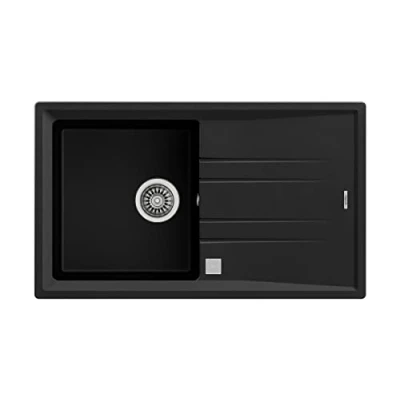 Teka TP 8434778006018_234005_Vendor Granite Sink with One Bowl and Draining Board Stone 50 B TG 1C 1E 86 x 20 51 cm, Black/White