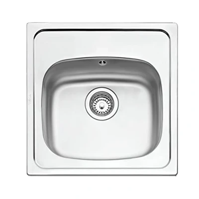 Stainless steel sink, polished finish. One bucket Recessed installation. Manual valve drain with 3½" basket and siphon. Depth of bucket 155 mm 50 cm furniture Dimensions H x W x D (cm): 51 x 50 x 15.5 50 cm base unit, Weight: 5.2470018356 pounds, Manufacturer: Teka