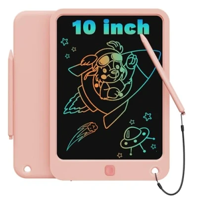 TEKFUN LCD Writing Tablet Kids Toys, 10 inch Colorful Doodle Drawing Board Tablet, Travel Learning Toys Birthday & Christmas Gifts for 3 4 5 6 7 8 Years Old Boys Girls (Pink)