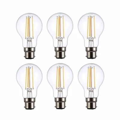 TEKLED® A60 Filament Vintage LED Bulbs B22 Bayonet Cap Energy Saving 6.5W Light Bulb 60W Equivalent NONDIMMABLE Clear 2700K 806LM 6 Pack Warm White